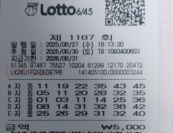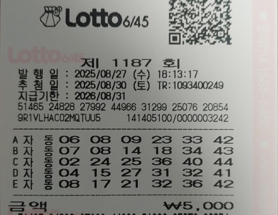 이번에 구매한 25게임 자동번호를 전격 공개합니다.